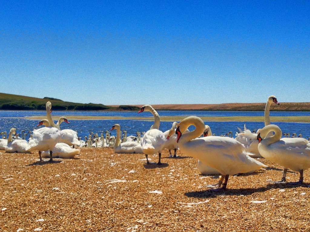 A slightly bumpy start but it was so worth the journey. The swannery is a natural habitat for the mute swans, where they are made comfortable but are not enclosed. Chesil Beach is the backdrop to this gorgeous scene: