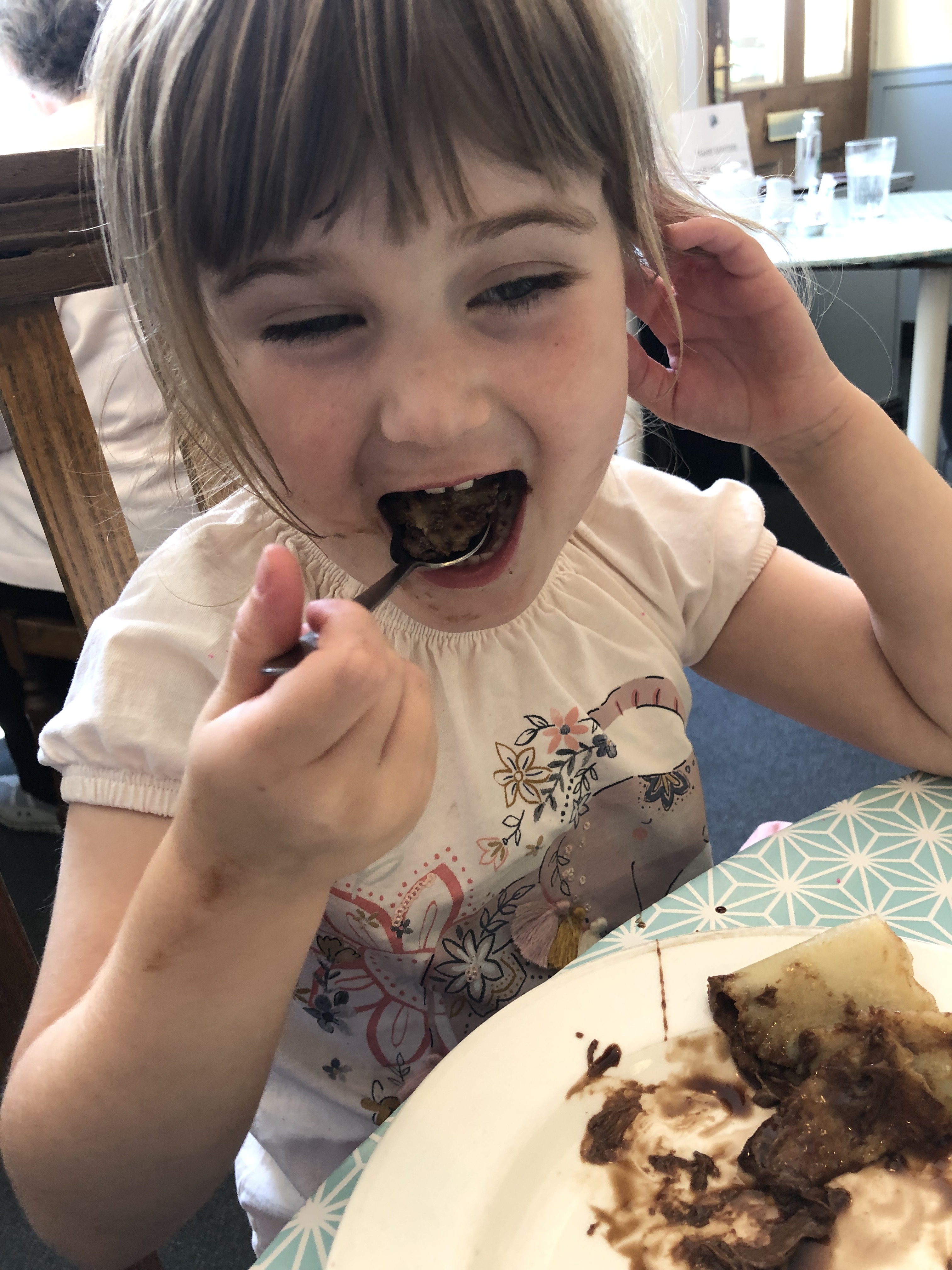 Service was very good, the owner interacted with my children, which I appreciated, and played a little joke “So these chocolate pancakes are for mum and dad?”.