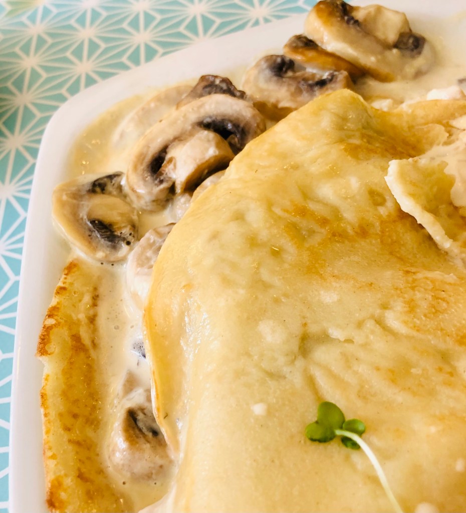 My husband had a mushroom pancake; and he is super fussy (when we eat out). He said, “ahhhh that is why I love mushrooms”. He also described the sauce as carbonara-like, very creamy.