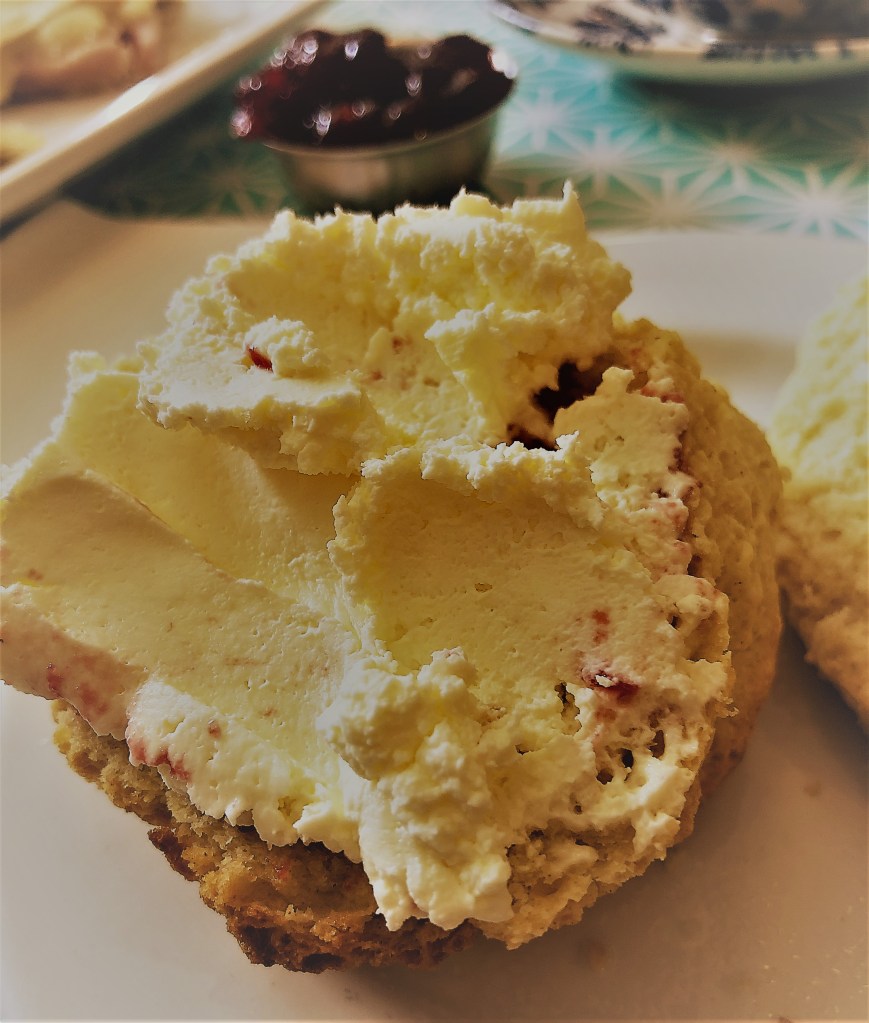 After lunch we had a cream tea. I had a plain scone, which is a treat, because usually I have to take the raisins out. It arrived still warm and moist. They provide a generous portion of cream and jam. Husband ordered a cherry scone and a blueberry and lemon scone. He was offered lemon curd, which worked well with the blueberry scone. The tea was nice but I should have requested loose-leaf tea. I thought it would come as standard, but alas it did not, so a note to self for next time.