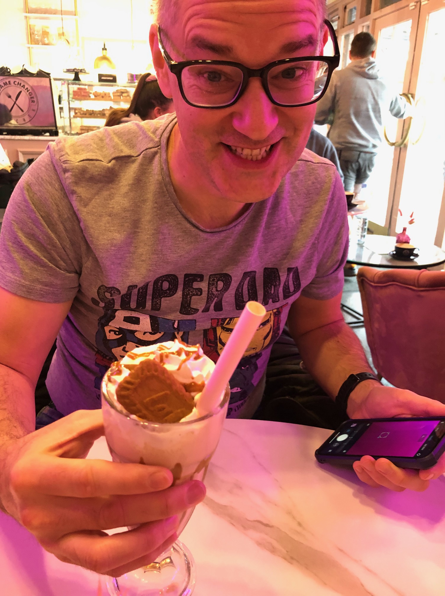 We ordered our giant cakes with a side of lunch, and whilst we waited we went over to the lake for a little walk, it was very pleasant. I had soup, my husband had a salad and the kids had toasted sandwiches. The salad had a strange mix of flavours (according to H) but I loved my soup, the bread and the soup were both pleasingly thick.